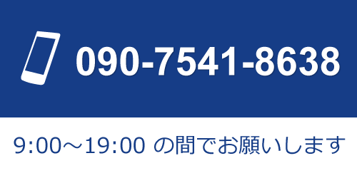 公私で携帯電話を使用のため、お電話は9:00〜19:00の間でお願いいたします